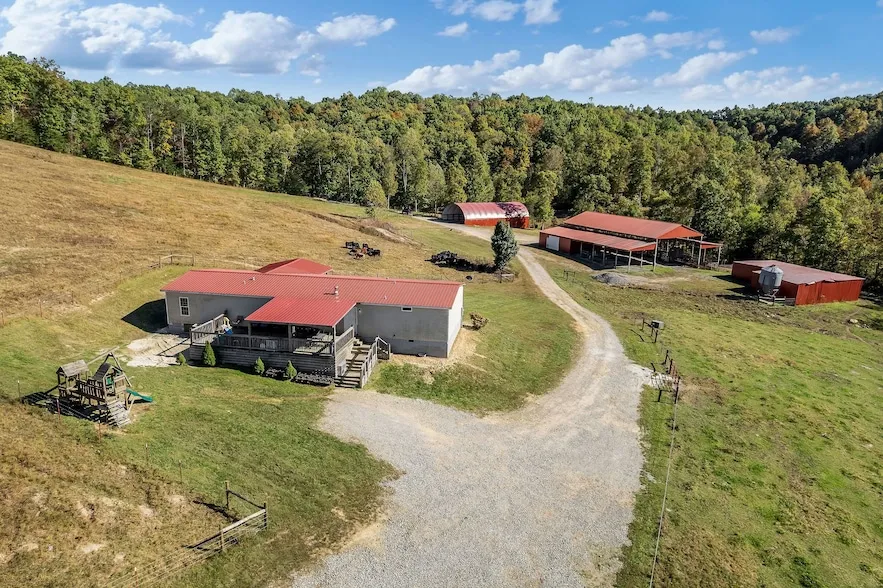Discover the perfect blend of country living and modern comfort on this 55-acre farm, fully equipped with two 32x76 hay barns (to be removed prior to closing), an 80x80 barn with its own electric meter, a 30x30 enclosed shop, and a 30x60 livestock barn. Cross-fenced with automatic waterers, two water meters, and a small creek, the land offers prime agricultural potential and is enrolled in the Greenbelt for tax savings. A build site atop the hill provides stunning views, with a driveway already in place. The 2,180 sq. ft. home features huge covered porches, a wood-burning fireplace, fiber internet, a massive primary suite, and ample family space. With underground electric and abundant wildlife, this property is the perfect retreat or working farm schedule your tour today! **Seller willing to potentially lease the pastureland back from buyers.**
