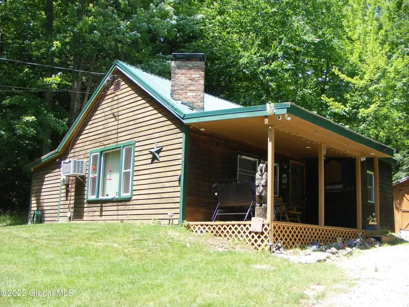 Adirondack Furnished Cabin Private Setting 1.8 acres(1.3+.5=1.8 acres-2 lots)Great Sacandaga Lake Close By! Great room offers living room with vaulted ceiling, knotty pine, interior, & fireplace open to kitchen and dining area. Two bedrooms and one bath. Laundry room in back of cabin, two sheds and open porch to enjoy the peace and quiet of nature. Newer windows, drilled well, septic and renovated bathroom. On waiting list for Day Beach Association. Saratoga County public boat launch & picnic area and marina is a short drive away.