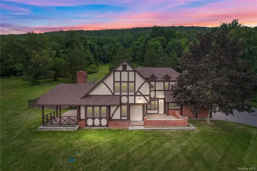 Gorgeous Classic Tudor COMPLETELY RENOVATED, and MOVE-IN READY! This special Warwick home is set on 5.7 PRIVATE acres with MOUNTAIN VIEWS, a BEAUTIFUL SALT WATER IN-GROUND POOL/PATIO and UNBELIEVABLE MASSIVE ENTERTAINING GREAT ROOM with stone fireplace and WET BAR! If you like to ENTERTAIN, this is for you! The HEATED POOL features a INTEGRATED JET SPA AND WATERFALL STAIRS! Just inside the wall of sliding glass doors, you find the incredible 1,063 sq ft GREAT ROOM with wet-bar; an office/bedroom; a full bath; large fully renovated kitchen, formal dining room, den with window seat and second fireplace PLUS hardwood throughout. NEW HOT WATER HEATER, FURNACE AND ROOF!! Multiple lovely outdoor areas to take in the views including a huge front patio area and covered private side patio. Master bdrm with fabulous master bath/tremendous skylit shower; two add'l bedrooms with great walk-in closets/storage and bonus space. All NEW kitchen appliances, plus washer/dryer are included!