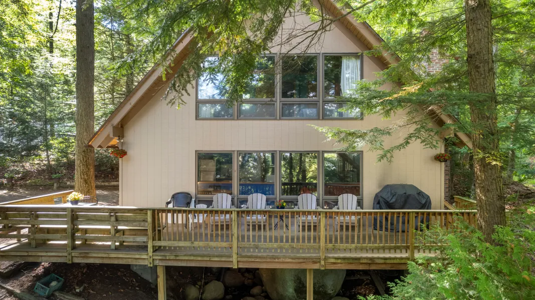 Discover your Adirondack retreat at Blue Sky Estates on Schroon Lake! This classic lakefront chalet combines the best of both worlds—exclusive HOA amenities AND the privacy of your own shoreline. Enjoy the community's sandy beach and shared dock, while also claiming 103 feet of your own private beachfront with a personal dock and streamside sitting area. Inside, the open floor plan creates a warm gathering space, with three bedrooms and two full baths offering comfort for family and guests. Spend mornings sipping coffee on the deck, afternoons paddling from your dock, and evenings fireside, taking in the glorious sunsets behind the High Peaks. Just minutes to Gore Mountain for world-class skiing, connected to extensive snowmobile trails, and surrounded by vibrant fall foliage, this property offers four seasons of adventure. Whether you're boating, hiking, skiing, or simply soaking in the views, every day here feels like a true Adirondack escape.