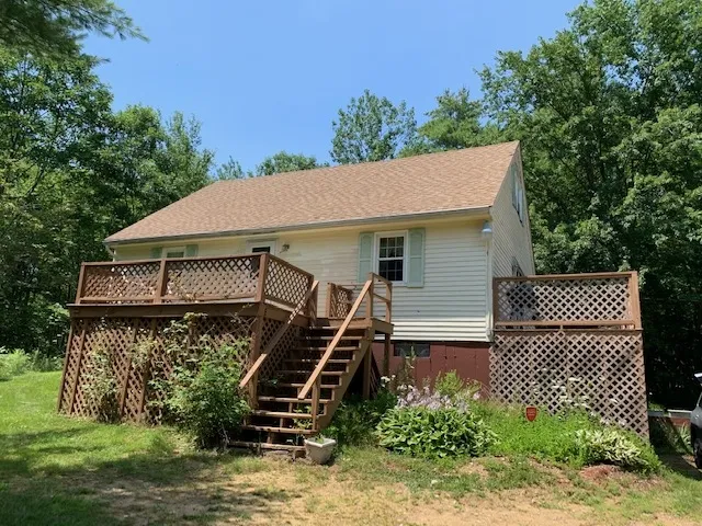 Cute open concept Cape with cathedral ceiling & ceiling fans. Has upstairs bedroom and a large family room in walkout basement. Nice 8x26 deck for cookouts. Nice yard and garden areas. Private setting.
