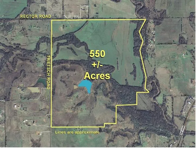 Excellent 550+/- acre ranch in a great location, with Clear Creek frontage, rolling hills, new 5+/- acre lake, cultivated bottom land, beautiful views, numerous species of trees, many 100 ft tall! Wildlife includes trophy whitetail deer, turkey, bobcats, coyotes, and others. Buyer to verify all information.