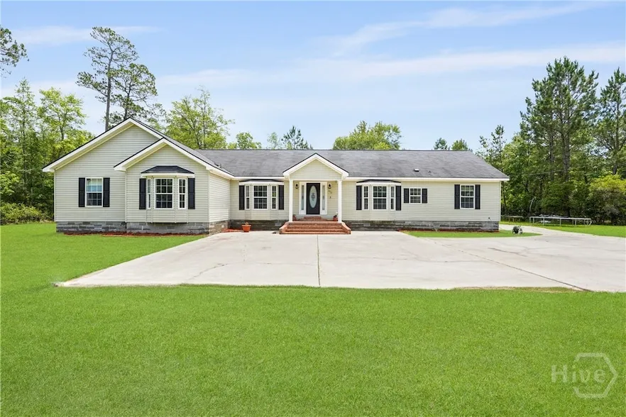 Welcome to this beautifully designed 5-bed, 3.5-bath ranch-style home on Brogdon Road. Set on 3.2 acres with a wooded border, this property offers the perfect mix of privacy, space, and charm ideal for those seeking a peaceful lifestyle without sacrificing convenience. The open floor plan ensures no wasted space. Whether you need a formal living room, entertainment area, home office, or guest suite, this home has it all! The kitchen features quartz countertops, abundant cabinetry, and a large island perfect for gatherings. You'll love the spacious family room, oversized master suite, and generous closets. Step outside to enjoy a 2-car garage, back deck, large roundabout driveway, goat area, and chicken coop. Located in the top-rated Effingham County school district. No HOA bring your animals, toys, and enjoy the best of modern country living!