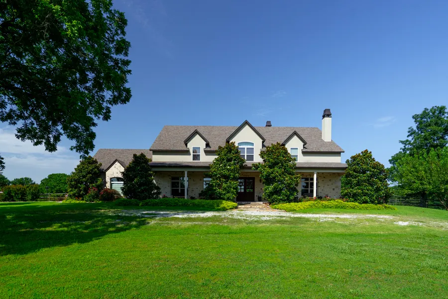 WELCOME TO THIS GORGEOUS, WELL-APPOINTED CUSTOM HOME SITUATED ON 27.5 +/- ACRES JUST OUTSIDE OF BROKEN ARROW! As you enter through the gated entrance, youll discover an exceptional property offering the perfect blend of luxury and country living. This stunning 5,400 +/- sq. ft. home (CH) is thoughtfully designed for comfort, functionality, and elegance. It features three spacious bedrooms, four full bathrooms, and one half bath inside the main housewith an additional half bath located in the barn attached to the office there. The open concept floor plan includes a generous living area with a gas fireplace and a showpiece chefs kitchen designed by Kitchen Ideas, complete with high-end appliances, galley sink, ice machine, and an oversized butlers pantry with its own water source. You'll also find a formal dining room, dedicated study with fireplace, large craft room (which could be converted into a fourth bedroom), indoor safe room, and spacious game room with room for future expansion. The primary suite boasts its own gas fireplace, luxurious en suite with steam-equipped shower and multiple heads, and an attached exercise room that would make an ideal nursery. Hickory hardwood floors run throughout the first floor. The home is equipped with three geothermal unitstwo serving downstairs and one upstairsand a separate high-efficiency unit exclusively for the home office, allowing for independent temperature control. A whole-house generator provides automatic backup during power outages. Spray foam insulation enhances energy efficiency, and the roof was replaced in 2023. Outside, enjoy a large pond, inground saltwater pool, horse stable with tack room, workshop with half bath, multiple garage spaces, and a producing orchard with scheduled irrigation. With room for animals, gardening, or simply relaxing, this one-of-a-kind property offers a rare opportunity just minutes from town. Additional land available.