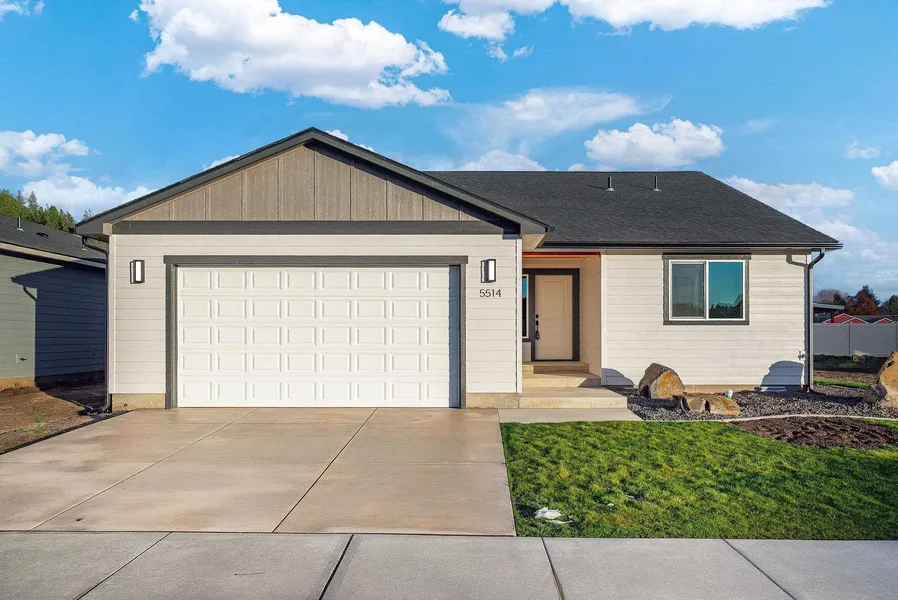 This newly constructed single-level residence offers 3 bedrooms and 2 bathrooms with wide hallways and no-step access throughout. The kitchen features quartz counters, a waterfall-edge quartz island, gas range and stainless appliance package, plus two-tone Huntwood cabinetry in the kitchen and bathrooms. A floor-to-ceiling fireplace anchors the living area. A private home-office or bedroom with solid French doors adds flexible space. The primary suite includes a walk-in closet with custom wood shelving and an en-suite bath with double vanity and walk-in tiled shower. Attached 2-car garage includes hot/cold water and smart garage door opener. The home extends to covered outdoor living feat. a patio finished with tongue-and-groove soffits. The property sits in Spokane Valley with access to local shopping, recreation and trail systems. No HOA.