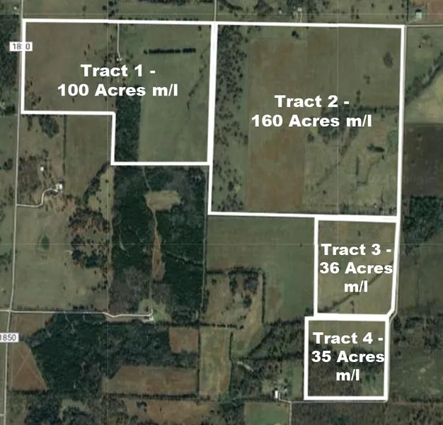 REAL ESTATE Consists of 100 m/l acres Fenced / Cross Fencing with a 3-2 Bedroom 2 Bath Home 1600 Sq Ft 24 x 36 Shop with concrete Floor and a Loft. Plus 160 acres m/l with a 40 sx 100 outbuilding with a partial concrete floor. Then another 36 acres m/l with Rural water, and fenced pasture land. And another 35 acres m/l contains rural water fenced and cross fenced with a great building site 1/3 is open, 2/3 mature timber.