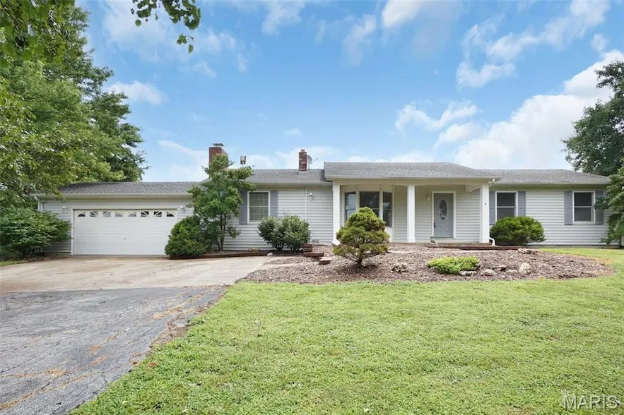 Nestled just outside the city limits of Washington on 2+/- scenic acres, this ranch offers peaceful country living with the convenience of being just minutes from town! Inside, you'll find 3 bedrooms and 1.5 baths, and over 1600 SQ. FT. of finish including a main floor primary suite with attached half bath. The spacious living room features a beautiful wood-burning masonry fireplace, while the sunken family room offers a cozy second fireplace perfect for relaxing evenings. The eat-in kitchen offers generous space for daily meals and gatherings, featuring stainless steel appliances, cabinetry with crown molding, and a double pantry that provides excellent storage solutions. A full bathroom on the main floor includes a classic tub/shower combo. The walkout lower level is currently unfinished, offering fantastic potential for future living space or storage with washer and dryer to STAY! Additional features include a 2-car garage, private well and septic, 200-amp electric service, and a furnace that s approximately 5 years old. With fantastic views, a quiet setting, and easy access to town, this property blends comfort, privacy, and everyday convenience in one inviting package! Don't miss this opportunity! Property is selling "as-is", seller to make no repairs. Seller is providing a One-Year Home Warranty Protection Plan at closing.