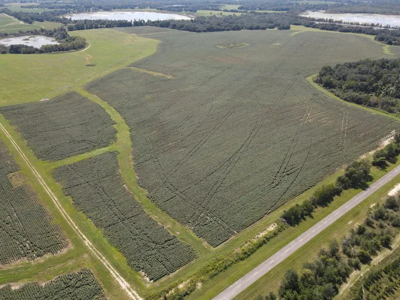 This 554-acre row crop farm offers expansive land with fertile soil, currently used for planting cotton and peanuts. The property is well-managed and optimized for large-scale agricultural production, with a diverse layout to support both farming and recreational use.