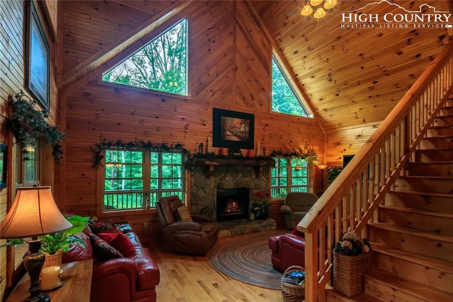 Beautiful Cabin located just 20 mins from downtown Boone. Enjoy a lovely mountain view from the huge wrap-around porches! Multiple levels of porches! They are covered and wide and where you will want to spend all of your time! Only having only one owner and never being rented out, this home is immaculate! Walk in and you will love the open floor plan featuring a wood burning fireplace (with propane already there for anyone who wants gas logs). Granite counter tops in the open kitchen. Master suite, laundry, living, dining, kitchen all on main level. Upper level has two full bedrooms, a full bath and a loft/office area. Central heating/air. Large open windows let natural light pour into every room. Metal roof and gutters/downspouts. Basement is plumbed for a bath....build more if you need it, like a bath and bedroom! Nearly 3300 ft above sea level, yet NO scary roads or driveways! This home is perfect for you and yours, or as an investment to rent out. Home was just re-painted and sealed. Please see the restrictions/convenants attached to the MLS.