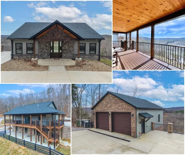Luxury custom-built home near Lake Cumberland offering exceptional craftsmanship, premium materials, and advanced smart home technology. Located in the highly desirable Garland Bend area of Burnside, this property offers the rare combination of privacy and convenience-just 5 minutes from town and only 2 minutes to the nearest boat ramp. Situated on approximately 1.5 acres, this 3 bedroom, 2.5 bath residence features solid wood flooring throughout, tile bathrooms, and a striking gas stone fireplace anchoring the main living area. The gourmet kitchen showcases custom-built cabinetry, a spacious island with bar seating, Kucht professional-grade appliances, quartzite countertops, and designer plumbing fixtures sourced from a kitchen and bath design center-perfect for entertaining and everyday living. The primary suite offers a private retreat highlighted by a spa-like master bathroom featuring a walk-in custom tile shower with dual shower heads, a rain shower head, and his-and-hers shower niches, blending luxury, comfort, and thoughtful design. Enjoy seasonal views of Lake Cumberland with the property backing up to the Corps of Engineers, providing added privacy and a natural wooded backdrop. Outdoor living spaces include Trex decking on the back patios and stained wood ceilings on both the front porch and rear deck. The finished walkout lower level delivers impressive character with exposed brick walls and posts, a kitchenette with full-size refrigerator, pool table room, and direct access to the back patio and stone walkway. A 30x40 fully insulated detached garage with 12-foot doors offers ample space for boat or camper/RV storage. The interior features metal-covered walls and ceiling with a brick foundation, is wired for a mini-split system, and includes a 50-amp RV hookup. A partial gravel path leads from the home to the lake and can be accessed by side-by-side or golf cart. Additional features include smart HVAC and lighting systems with remote app control, premium building materials throughout, and no expense spared in construction or finishes. Ideal as a primary residence, luxury lake house, or investment property / vacation rental, this home offers year-round enjoyment in one of the area's most sought-after Lake Cumberland communities.