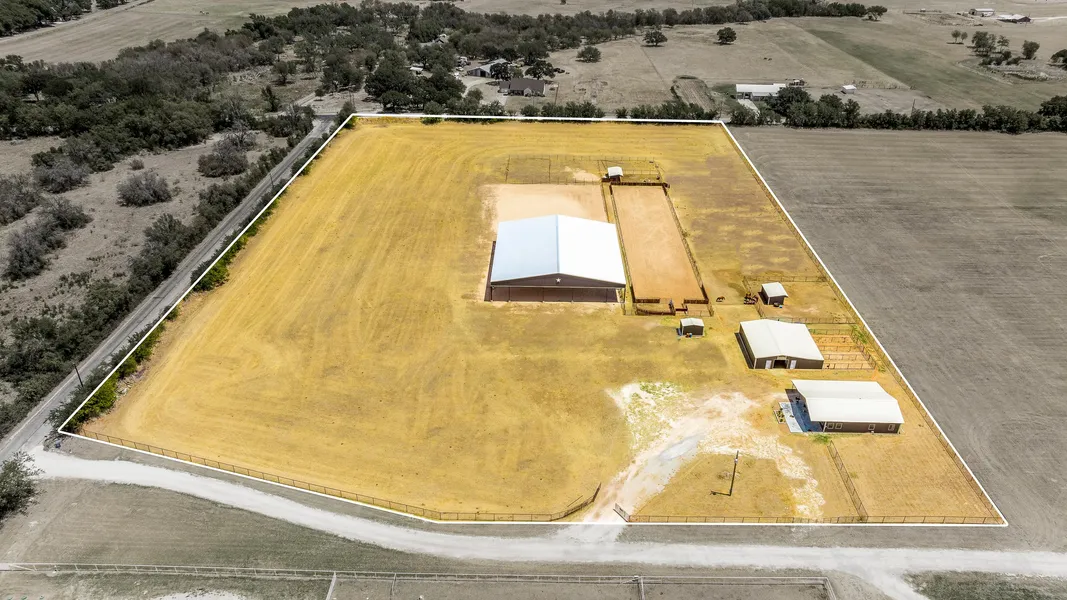 Cowboy Paradise right in the heart of the Cowboy Capital. Stunning metal home built in 2021 on 10 acres of coastal, 5 minutes from town on pavement awaits this perfect set up! Walk up the gorgeous porches to the 1380 sq ft 3 bedroom 2 bath open concept ranch style home. Wood accents throughout, stained concrete floors with a wonderful breakfast bar in the kitchen. Outside is a 120x110 covered riding area waiting to be the indoor arena of your dreams. The property is fenced and cross fenced with loafing sheds in every turn out. The stall barn has 3 12x12 stalls with 50 ft runs, 2 18x12 stalls, one with 50 ft run. Two storage rooms in the barn one has spray foam insulation. Pipe 280x60 roping arena. All fencing is goat wire. Great 3 hp well. This is a must see! No restrictions. Tractor and all extra fencing materials can be bought as well. The property will need an new entrance, right now it is a shared driveway.