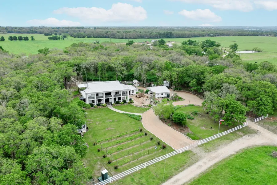 Breathtaking country estate situated on 38.5 acres in Brazos County! Soak in the breathtaking sunset views for miles on the upstairs Veranda or your screened in Amish Country gazebo. Amazing attention to detail and one of a kind features throughout the home. 7' Schonbek crystal chandelier in foyer with matching 2' chandelier and wall sconces in the formal dining room. Italian marble fireplace with gas starter. Fully updated kitchen with granite counters and stainless appliances including a dual fuel gas range and wine fridge. Bonus room on main floor can be used as an additional family room, office space for a home business, exercise, craft or home school room. Outside is an entertainers dream! Covered patio leads out to a salt water pool with built in water features. Motorized and remote controlled Sunsetter awning provides additional shade on both patio and pool. Custom outdoor kitchen with gas grill and cooktop, granite counters, fridge and sink. Tell stories or roast marshmallows around the fire pit with copper tempered glass. Gorgeous landscaping at every turn with a greenhouse and rainwater collection tanks that collect runoff from the metal roofs. Improved pastures, 48 x 24 metal shop with shelving, built-in workbenches, concrete flooring and covered porch. Ranch office, Hay barn and working pens. Two ponds with pier and seasonal creek support. Ag Exempt!