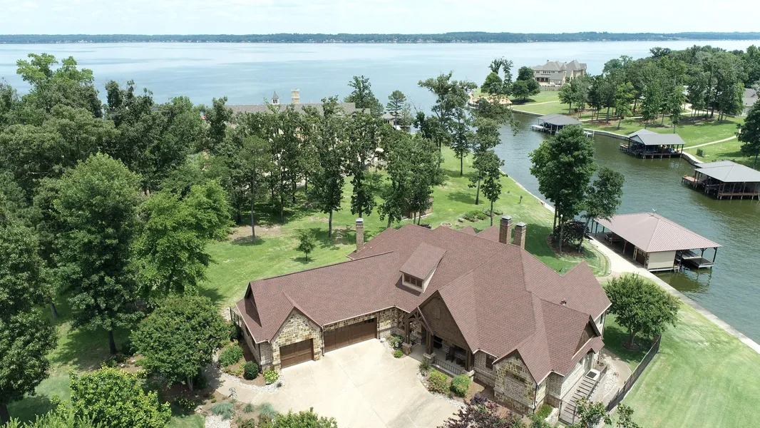 Welcome to your waterfront oasis on the serene shores of Lake Palestine! This estate property offers 2.1 acres in the prestigiously gated Brown's Landing subdivision, with an exceptional 5851 sq. ft. home & 442' of shoreline including recently reinformed bulkhead! Step inside this thoughtfully designed home to discover an expansive living area with vaulted ceilings & fireplace that opens to the formal dining & an incredible gourmet kitchen with oversized island. A newly upgraded Crestron Home Automation System awaits the new owners. The light-filled bonus space overlooking the lake can be used as a dining area or additional seating. Linger on the covered side patio with WBFP in the morning to enjoy sunrises over the Lake. Conveniently located office on main level. The primary suite on the main level offers a spacious bedroom, elegantly appointed bathroom with coffee bar, large closet, & outdoor access to fenced back yard. Descend the wide stairway to the lower level to enjoy an additional living area/game room with fireplace, pool table, bar, media room with recently updated "Full Swing" golf simulator, 3 bedrooms, 2.5 baths, & tons of storage! Generac Whole House 36 KVA backup generator for comfort no matter the weather! Step onto the lower patio to relax in the peacefulness of the waterfront setting. Bug misting system surrounds home and boathouse. A 3-stall boathouse with Garapa Brazilian hardwood deck, storage area with overhead door is nestled in a bay protected from wave action & strong winds, offering easy access to fishing, boating, skiing & more! Neighborhood amenities include common areas with landscaping & fencing, security gate, picnic pavilion with fireplace & restrooms, waterfront firepit, underground utilities, a day marina, private boat ramp & separate private gated & fenced boat/trailer/RV storage area. You owe it to yourself to visit Brown's Landing - your dream of lake living begins here