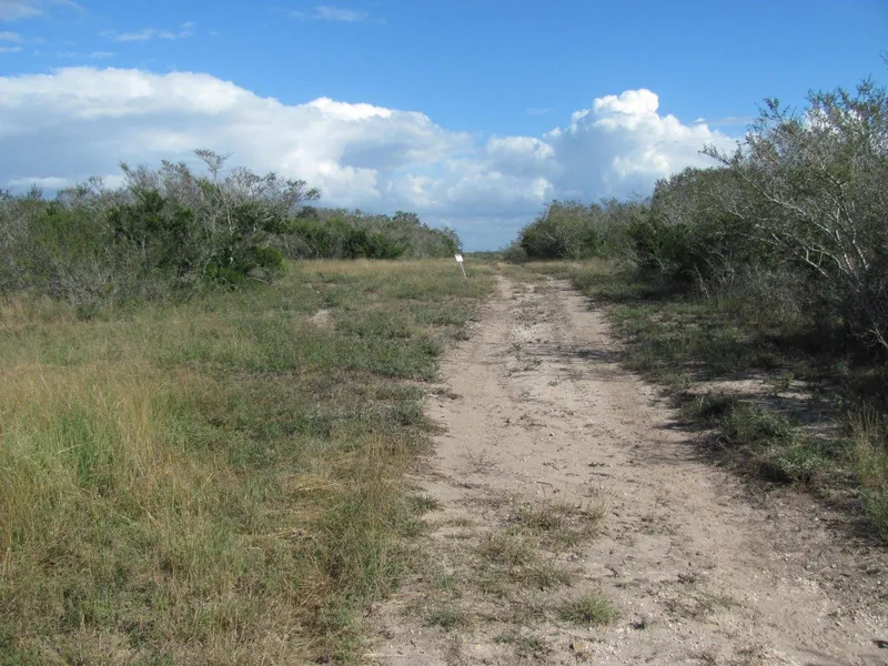 The ranch south of FM 2442 has similar terrain and brush. Elevations range from 300 to 350 ft. There appears to be one water well near 2442 with water piped to good concrete troughs across the ranch. There are several large cleared areas excellent for grazing. The eastern side has the most elevation change and habitat. An old caliche pit still has what appears to be enough area to supply road material.