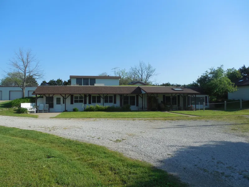 Energy efficient all electric home is unique to area. Berm home with sod roof, new 60 x60 ft. metal building with concrete floors and electric, Includes new cottage/studio/home all handicap assessable with bathroom, laundry and kitchenette,600 S.F. Home is all concrete with 12 in. walls, window along south side and 3 entry doors. Covered patio, concrete ceilings with rubber barrier over 20 ft.x 40ft 4"hollow core slabs. Hot Water tank can be either solar or electric, sky light over 8x8 ft. atrium which is inside the home for large plants. Seller uses wood burning fireplace for heat but home does have central h/a. Pasture is cross fenced with 4 ponds with native,fescue and gamma grass. Small home could be used for living, office or craft shop.