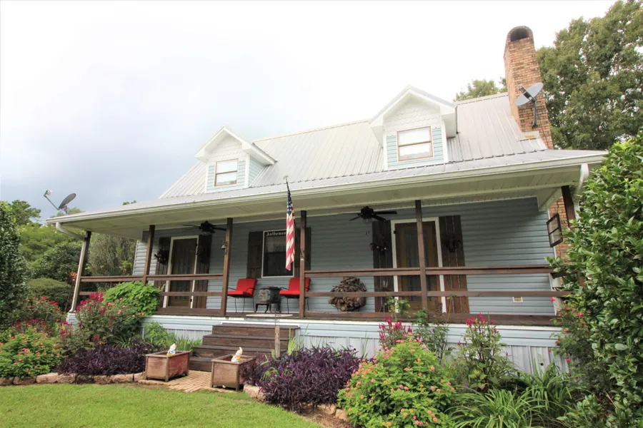 Back to the main house. The laundry room/utility room is extra large for lots of storage. The front and back porches are covered and have ceiling fans. Rustic, barn wood has been used to accent the walls in both bathroom and the den area. OH! The owner has installed a new HVAC system!!!!