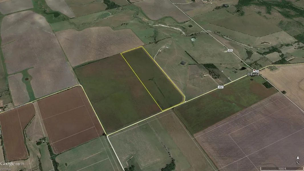 56.59 acres located just East of the intersection of Deer Creek Road & CR 452/453 near the Blevins community in Falls County, TX. Previously cultivated and used for agriculture as dry cropland, but is currently vacant. Land is almost completely clear with the exception of one patch of trees in the center of the property. There is overhead electric along the road, as well as a co-op water line (Little Elm Valley WSC). The property is fenced with barbed wire across the back boundary and open on three sides. Open Space Valuation (Ag Exemption) in place for low property taxes: $304.62 in 2015. Bruceville-Eddy ISD. Seller will convey any owned mineral rights.