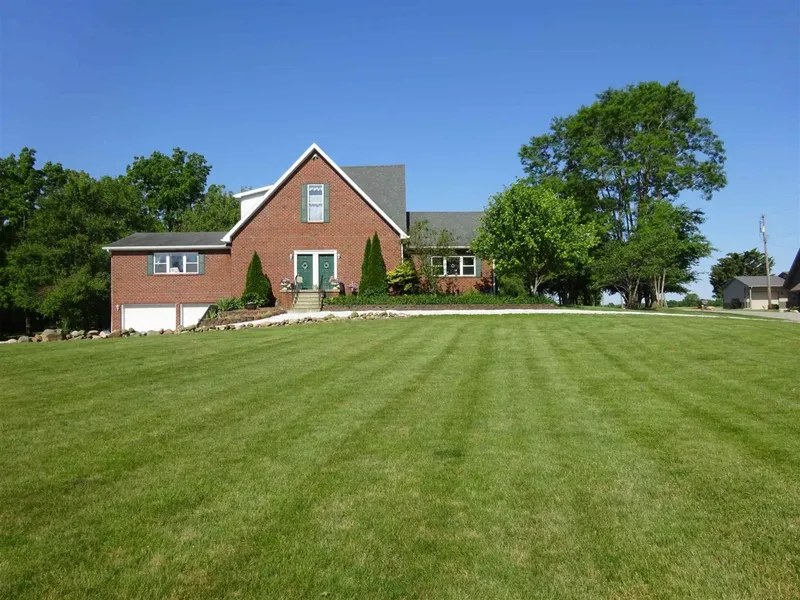 There is so much to love about this beautiful Brick home in Gaston in the Wes Del School District for those ready to enjoy a wonderful country setting! This home sits on a gorgeous 2.6 acre lot with trees and tons of greenspace to really spread out and enjoy the outdoors. It underwent a major remodel in 1996 by the Amish and still includes some of the original Post and Beam Construction on the Upper Floor. The home has a nice sized foyer with vaulted ceiling that opens to the large Kitchen/Living Room area. The kitchen has lots of custom cabinetry with pull outs and 2 Lazy Susans. It features four bedrooms including a first floor master with sitting area. In addition to another bedroom and full bath on the first floor, the second floor has a family room/playroom area as well as two other bedrooms and a second full size bath. There is a partial unfinished basement for plenty of storage. The current owners recently installed a brand new HVAC System and has a newer Water Pressure system. New gravel for the circular driveway was recently installed as well. Low taxes. Please allow 24 hour notice for all showings per seller.