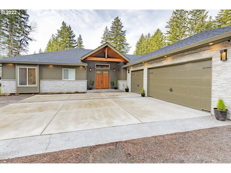 Builders home boasting Camas schools w/ Vancouver address/taxes. All 3 bdrms are full suites. 20 min to PDX. 1600 Sq ft. fully insulated shop. Income/mother-law quarters? Shop has bth, ktch, office. Open concept living offers open air feel with 12 bifold doors to 1200 sq. ft. Trex Deck . Kitchen is a dream w/ oversized pantry, commercial fridge, oversized center island, and double ovens. 8 min. to downt. Camas or Vancouver amenities. Backs to gov. land for riding and trails. 3rd br. has Murphy
