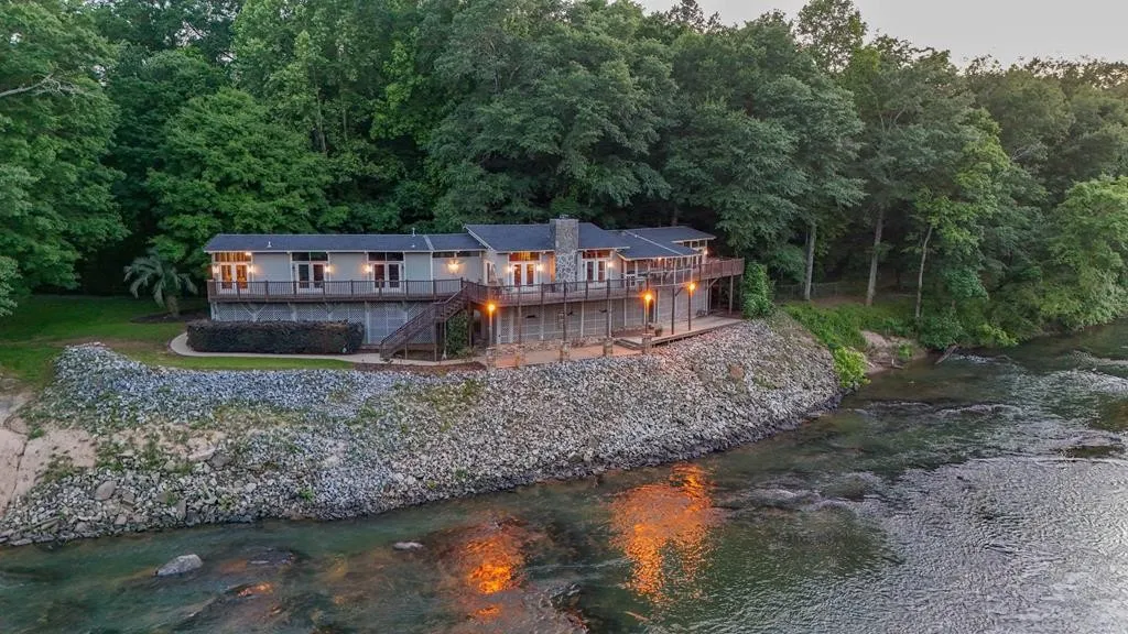 Nestled on the picturesque banks of the Ocmulgee River in Macon, this remarkable property spans 10 acres of serene landscape. With nearly 3000 square feet of living space, every corner of this home offers a breathtaking view of the river, creating an ambiance of natural splendor. Conveniently located just five minutes from Interstate 75 and The Shoppes at River Crossing, yet enveloped in the tranquility of nature, this residence seamlessly blends accessibility with the allure of a secluded getaway. The heart of the home, the kitchen, boasts modern stainless steel appliances and a captivating panorama of the flowing river, turning everyday tasks into moments of serenity. A cozy den, adorned with wood-ceilinged warmth, invites relaxation, centered around a fireplace that promises comfort and solace. As an added feature, the home features a sunroom with breathtaking river views away from the main living area. Escape to this idyllic haven and immerse yourself in the beauty of riverside living—a sanctuary where modern convenience harmonizes with the enchantment of nature.