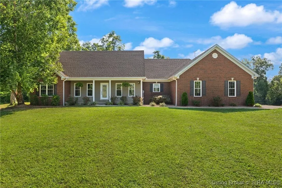 Nestled on 9 picturesque acres, this 4 bed, 3 bath home is a nature lover's dream - located only a few minutes from I-65. A stocked 1.5+ acre pond with bass, bluegill, and crappie, offers serene backyard views. The property showcases a blend of rustic charm and modern luxury. Featuring a fully finished walkout basement with a dedicated workout room and a new kitchenette, perfect for entertaining or multigenerational living. The main level has cathedral ceilings, board and batten details, and hardwood floors, while the basement offers cozy vinyl plank flooring. Indulge in the comfort of heated bathroom floors, and unwind by one of the two gas fireplaces. The kitchen on the main level is equipped with a convection oven and induction cooktop, a convection microwave, and reverse osmosis water, all complemented by a whole-house water filtration and softener system. The home also boasts a hybrid heat pump water heater, dual system HVAC, a 500 gal buried LP tank, whole house dehumidifier, and new windows (2020), ensuring year-round comfort. Outdoors, enjoy a recently painted deck, refreshed landscaping, and a variety of trees on this beautiful wooded lot. The 2.5 car garage provides ample space, while new gutters (2021) and a roof replaced in 2011 add to the peace of mind. The basement features a concrete reinforced, cedar lined, safe room with water and HVAC. This property is ready to welcome you home. Sq ft & rm sz approx.