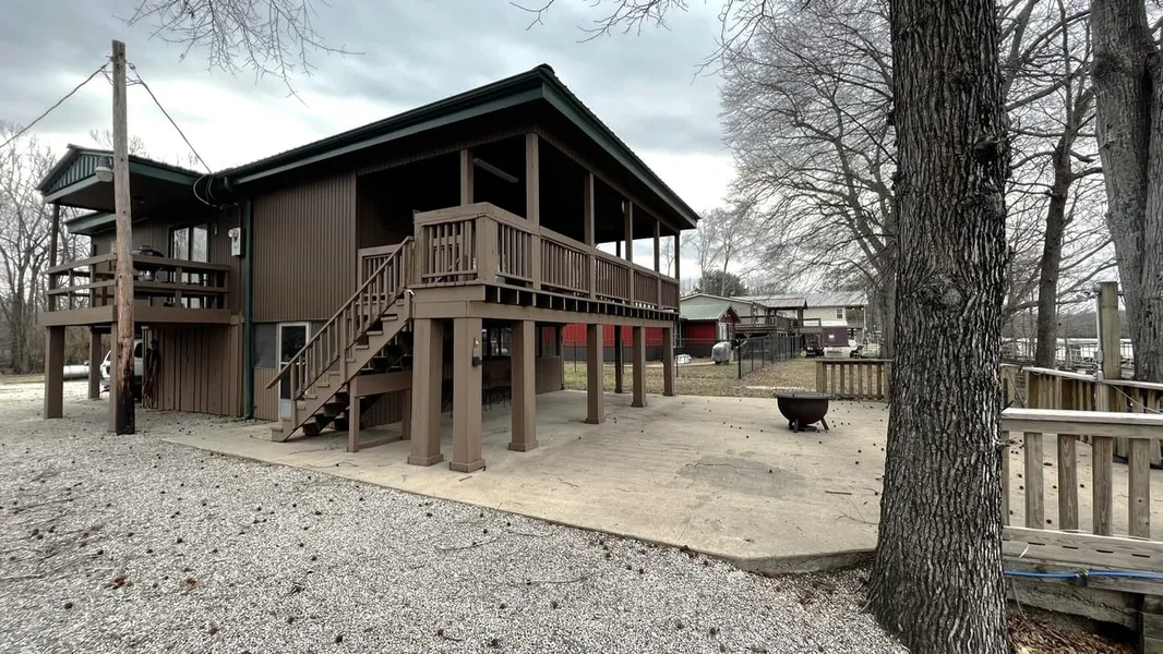 Included is a graveled lot, offering parking for boats and trucks. There is also a spacious metal boat dock featuring 2 boat stalls and a sprawling sun deck, perfect for soaking in the sun or casting your line into the water.