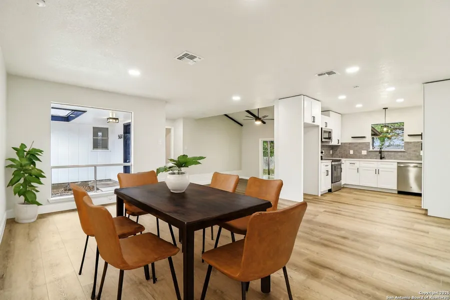 Welcome to this beautifully remodeled 3-bedroom, 2-bathroom home located in the peaceful and quiet Oak Hills Terrace subdivision, NO HOA! Conveniently situated across the street from Oak Hills Terrace Elementary School, and just 2 miles from the Medical Center, 10 miles from La Cantera, Six Flags, The Rim, 11 miles from SeaWorld, and 11 miles from Downtown, this property offers exceptional central access while maintaining a tranquil neighborhood feel. This home has been fully renovated with quality upgrades throughout, including a brand-new roof, updated electrical system, new ceiling fans, and modern lighting fixtures. The interior features new WPC and SPC flooring throughout, complemented by fresh interior and exterior paint that creates a clean, modern, and inviting atmosphere. The kitchen and bathrooms have been tastefully updated with new cabinetry and quartz countertops, providing both style and functionality for everyday living and entertaining. The home's exterior showcases a classic combination of brick and wood siding, delivering timeless curb appeal and a well-balanced architectural design. Step outside to a nice backyard ideal for family gatherings, weekend barbecues, and play days for the kids, offering a private outdoor space to relax and create lasting memories. Additional upgrades include a fully updated garage with new garage doors and new drywall, adding extra convenience and value. Located within the highly rated Northside Independent School District (NISD), this move-in-ready home combines modern upgrades, comfort, and an unbeatable location in a desirable neighborhood-a must-see property.