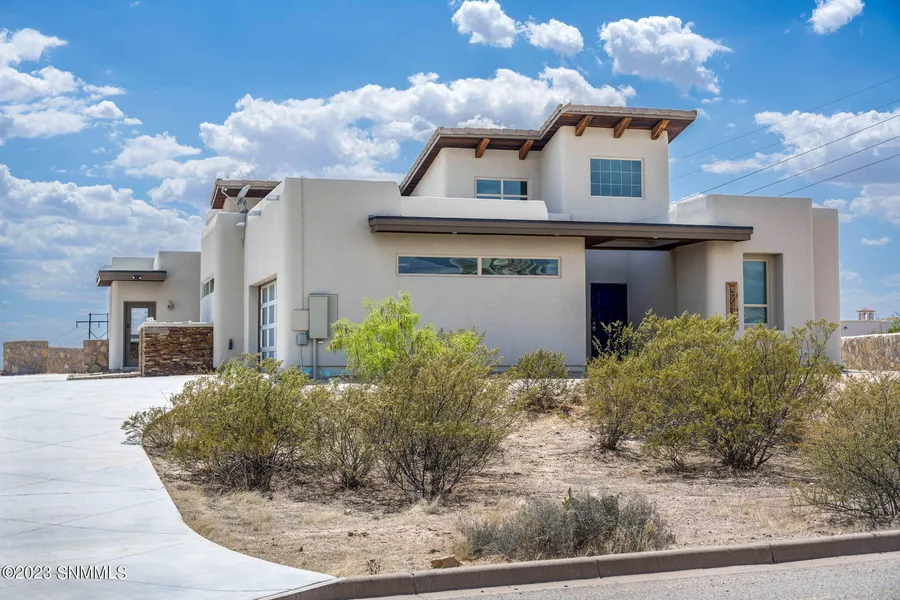 Beautiful Contemporary Southwest Style Home situated within a gated community on 1.78 acres. This gorgeous home features 4 Bedrooms, 3 full Baths and 2,625 square feet and game room/flex room. This modern industrial style home features a large open Great Room with exposed ductwork and overhead garage door that opens to the patio. The amazing Kitchen has a large island, stunning clerestory windows, quartz countertops and stunning valley/sunset views. Off the Kitchen is a large game room that is perfect for a pool table. The Primary Suite has a wood accent wall and walk-in closet. The En-Suite Bath has granite counters with double sinks and a gorgeous walk-in shower with rain shower head. The home has a split floor plan and features a guest wing that has a bedroom with its own entrance and a full Bath right next door. The backyard is a blank canvas and ready for the new buyers.