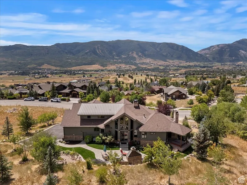Experience breathtaking lake and mountain views from this custom-built 4,452 sq ft luxury retreat in The Highlands at Wolf Creek. Only a few residences in The Highlands can boast about the unparalleled views from every room in this custom residence build with superior craftmanship by Buxton Builders in 2007. Our stunning listing features soaring ceilings and arches, custom Pela windows throughout and every door is stunning custom Alder wood with solid wood trim and custom arches. Enjoy a Modern styled wrap-around covered deck for summer and winter enjoyment Picture yourself savoring sunset views from the deck after a day boating on Pineview or unwinding by the outdoor fireplace and cookery after carving fresh powder at Snowbasin or Powder Mountain. Views of Snowbasin, Nordic Valley, Pineview, Ben Lomond Peak of the Wasatch Back, and the Ogden Valley. The open-concept living, dining, and gourmet kitchen is welcoming with its cathedral ceilings, a custom hand-blown glass chandelier, a dramatic floor-to-ceiling stone fireplace, custom Alder wood cabinetry, granite countertops, and Wolf appliances. The main-level primary suite features its own stone fireplace, spa-inspired bath with soaking tub, and a sauna. Upstairs, you'll find a second en-suite primary, plus a private study with custom floor-to-ceiling cabinetry. Luxury finishes include walnut floors, handmade 10-foot doors, and custom lighting throughout. The lower level offers two additional bedrooms, a large 3/4 bathroom, a theater room with velvet curtains and leather seating, new HD projector, Sonos surround sound, and a cozy fireplace-plus space for a pool table or game area. The radiant heat flooring keeps it warm in the winter and even without air conditioning, the lower-level stays cool during the summer months. Enjoy year-round outdoor living on the expansive patio with built-in grill, stone fireplace, and private hot tub. A heated 3-car garage with storage, meticulously landscaped .88-acre lot, pre-listing inspection, and option to purchase two additional lots make this an exceptional mountain home.