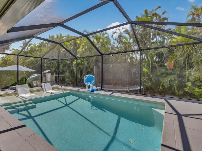 Stunning 3 bedroom, 2 bath, turnkey furnished home is a true island retreat. Upon entering this gorgeous home, you will immediately be impressed with the soaring ceilings, ample natural light, plantation shutters, and a spacious floor plan. The kitchen offers beautiful granite counters, white cabinetry, views out to the lanai, and is open to both the living room and family room - creating a desirable open floor plan. The master suite is a private retreat with large walk-in closet and ensuite bath featuring dual sinks and walk-in shower. Guests will enjoy the additional two bedrooms. The garage has been transformed into a game room - perfect for entertaining both those young and young at heart. The interior living space opens seamlessly out to the screened lanai and large backyard offering much privacy. The lanai boasts multiple seating areas and large pool with sun shelf. The backyard is complete with lush landscaping, playset, and shed. You will be able to entertain outside just as easily as inside, letting you take full advantage of the idyllic Florida weather. Do not hesitate to make this charming island home your piece of paradise.