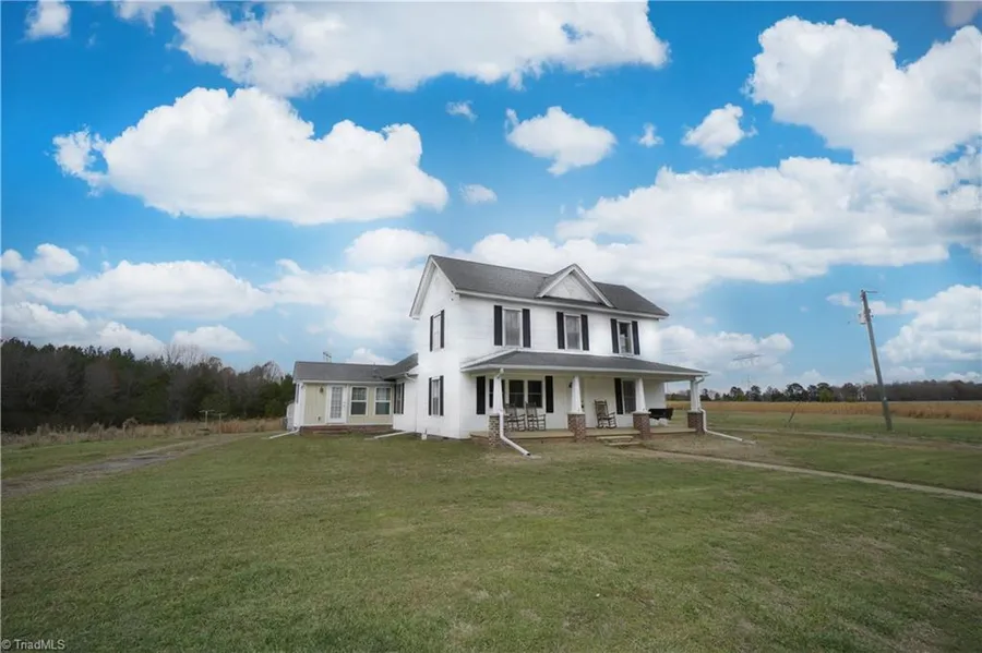 A farmhouse built in 1900, two hardwired outbuildings that sits on 6.55 acres with a circle drive! This house features three bedrooms with two baths. A spacious kitchen with some new updates, a separate laundry room with natural light and an enclosed porch. Master bedroom with hardwood floors, an en-suite and a large master closet with extra storage space. Fenced in pasture. County living with only a half hour commute to Greensboro/High Point/ Burlington. Cleared acreage for many possibilities. Toyota Battery Manufacturing plant only 4.5 miles down the road. Check out the virtual tour! Move-in ready, schedule your showing today!