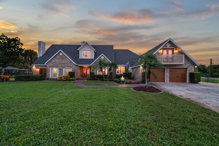 Discover your dream at 5675 S. Tropical Trail, perfectly positioned between the Intracoastal and Banana Rivers. This stunning gem offers over an acre of paradise with 300 feet of exclusive waterfront access and a private dock, setting the stage for idyllic waterfront living. The home's charming curb appeal and beautifully manicured landscaping warmly welcome you. Step inside through elegant French doors to a sun-drenched open floor plan, highlighted by vaulted ceilings and breathtaking river views. The family room invites you to relax, featuring wood floors, a striking floor-to-ceiling fireplace, and additional French doors that lead to your own private oasis with a screened saltwater pool and covered patio. The ground-floor primary suite provides tranquil backyard views, a cozy living area with a second fireplace, and a bathroom ready for your personal touch. You'll love spending time in the heart of this home. The spacious kitchen, boasting ample storage, a central cook island, and a large window framing picturesque views of the Banana River.Additional living space includes three guest bedrooms sharing a second full bath on the main level, alongside a fifth and sixth bedroom upstairs. The upper level also features a third bathroom and a waterfront balcony, perfect for an in-law suite or a haven for your guests. This property isn't just a house; it's a lifestyle. Come and see for yourself all that this remarkable home has to offer.