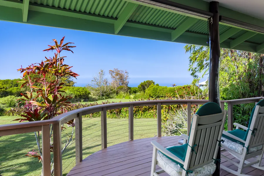 Welcome to your tropical oasis where paradise meets comfort in this exquisite single-story home in the highly desirable Maliu Ridge Subdivision. Nestled on a spacious, fully-fenced 1-acre landscaped lot, this beautifully designed 4-bedroom, 2.5-bath residence offers an ideal blend of modern living and breathtaking natural surroundings with views of Maui from expansive, covered lanai. Upon entering home you will immediately be drawn to the stunning Brazilian cherry wood floors. The vaulted tongue-and-groove ceilings add a touch of elegance and spaciousness and enhance the natural accents and open floor plan. Kitchen features granite counters, stainless steel appliances, eat-in bar area and adjacent dining area. Primary suite boasts an ensuite bath with dual vanity, walk-in closet and private lanai. Enjoy soaking under the stars in your own ofuro-style hot tub located just off of the primary suite lanai. 4th bedroom is immediately adjacent to the primary suite and would make an ideal nursery, office or hobby room. Additional guest bedrooms are located on opposite side of house to allow for privacy. The fully fenced 1 acre lost features an expansive orchard-like setting with many mature fruit trees to include lemon, lime, orange, banana, avocado and dragonfruit, and the owned 15 panel PV system and solar hot water heating system reduce energy bills and promote efficiency. Located just minutes from historic Hawi town where you will discover vibrant farmers markets, shops, dining and a variety of outdoor activities. Truly a must see property!