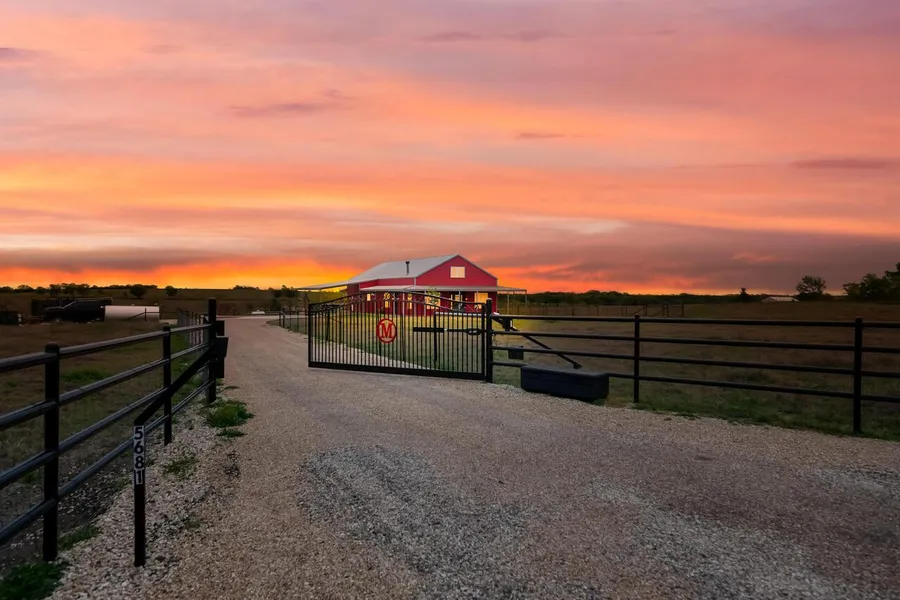 This is the Texas Dream! This beautiful home features 3 bedrooms and 2 full baths but also has a gameroom with wetbar, another full bathroom and upstairs bedroom that makes a perfect guest suite or office. There is a 1 car attached garage mainly for storage but a 3 car attached carport. The garage has a nice mudroom off of it that also connects to master bathroom. The gameroom has a window over the bar that raises up when ready to party and a glass garage door that opens to the patio. The patio also features a large granite bar that overlooks the beautiful inground pool and hot tub with waterfall feature. All of this is on 30.55+/- beautiful acres with a large tank (pond) with dock stocked with fish, some amazing Texas sunsets, and a 2 stall small barn to keep animals out of the weather. There are also 3 custom dog kennels. This one is just far enough out of town for some peace but close enough to still have HEB and Doordash deliver!