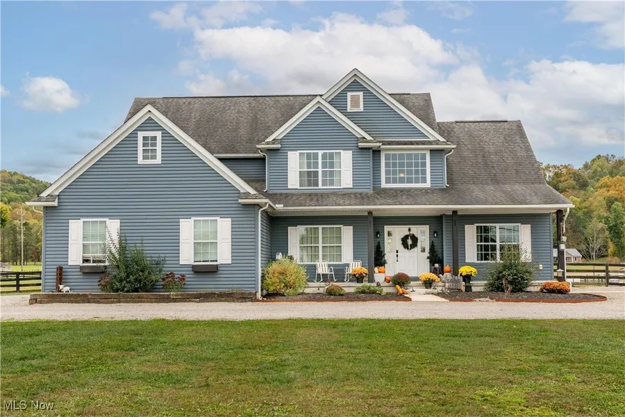 Nestled on 3 peaceful acres, this newly Amish-built 3-bedroom, 2.5-bath home combines modern luxury with country charm. Offering 2,850 sq ft of open-concept living space-plus a partially finished basement-in the desirable Ridgewood School District, it features vaulted ceilings, a stunning 17-foot stone fireplace, a stylish kitchen, a spacious primary suite with dual walk-in closets, and convenient first-floor laundry. The basement provides extra room for a gym, media area, or additional living space, while outside, the beautiful patio overlooks ample space to roam, garden, or add a pool. A 32x48 heated garage, built in 2019, includes a wash bay drain, heated floors, and 240-amp power-completing this move-in-ready home surrounded by quiet, scenic views.