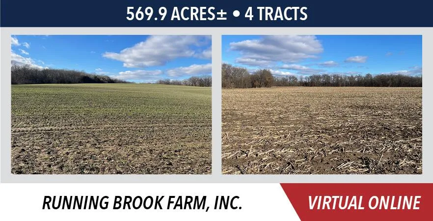 The Running Brook Farm, Inc. is located a short distance from New London, MO. Tract 1 is located approximately 5 miles west of New London along Brookside Trail and is further described as being located in Section 32, T56N-R5W, Spencer Township. Tract 2 is located approximately 5 miles west of New London along Brookside Trail and is further described as being located in Section 32, T56N-R5W, Spencer Township. Tract 3 is located 4.5 miles northwest of New London along Brookside Trail and is further described as being located in Section 33, T56N-R5W, Spencer Township. Tract 4 is located approximately 3 miles west of New London along Hwy A & Brookside Trail and is further described as being located in Section 4, T55N-R5W, Spencer Township, Ralls County, Missouri.