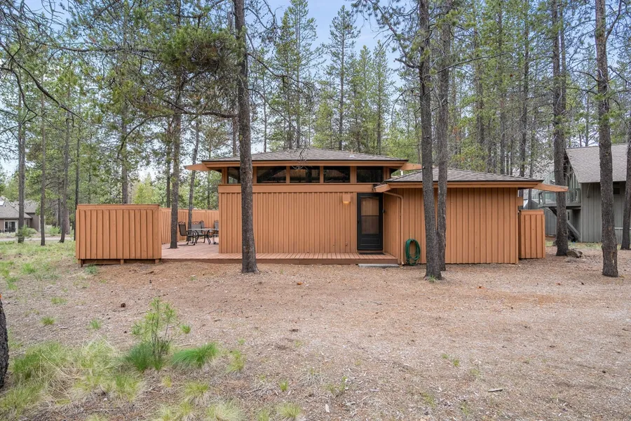 Tucked beneath the pines on a spacious, tree-lined lot in Sunriver, this charming, fully furnished cabin blends comfort, character, and untapped potential. The single-level design features two bedrooms, one full bath, and an open-concept living area with vaulted ceilings, expansive windows, and a cozy wood-burning stove and new roof (2022). A large wraparound deck with a working hot tub invites relaxation in a peaceful, natural setting, while the generous homesite offers room to expand or add a garage. Inside, abundant natural light and a dedicated laundry room enhance everyday livability. Whether you're envisioning a personal escape or a strong short-term rental, this rare opportunity in one of Central Oregon's most iconic destinations is ready for your vision. Sold as is and fully furnished—endless possibilities await in the heart of Sunriver. Offers due 6:00 pm on 5/25/25.