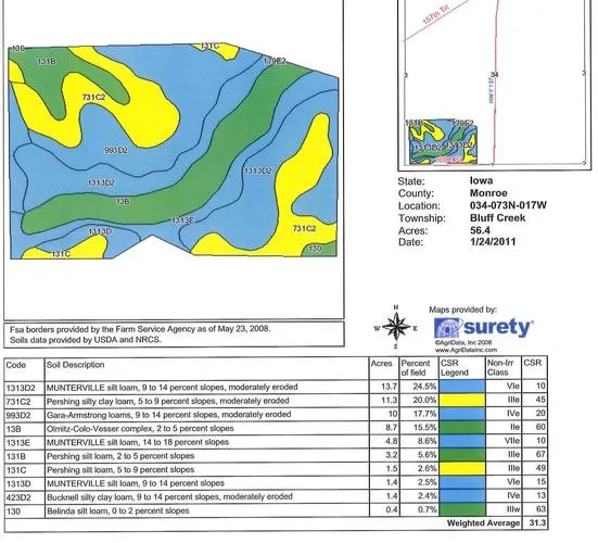 Search for detailed parcel information including; Elevation & Vegetation Maps, Ownership Information, Detailed Parcel Information, Crop History Map, Soil Survey Productivity Data, and more.