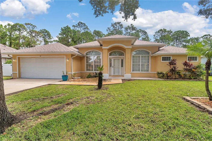 Lovely curb with the perfectly positioned palm tree leading to covered front porch with patio. Step through the glass door into inviting foyer with 2019 luxury vinyl plank flooring. To the left is spacious dining room to the right is the potential fourth bedroom or office. Leading straight ahead through the archway is an oversized living room with tray ceilings overlooking the custom paver and fenced backyard. For the ultimate privacy to the right of the home is a perfectly positioned primary bedroom featuring Tray ceiling and a sitting room. Sitting room as view of the backyard as well. Primary bath is Spa like with double vanity, garden, soaking tub and walk-in tile and glass door surround there are two closets in the primary. Leading back across the home you are greeted with a warm kitchen with 2019 stainless steel appliances, plenty of modern cabinets and a bar top island room for 4 to 5 barstools. There is a breakfast area as well overlooking oversized custom paver patio. Just behind the kitchen are two additional bedrooms and second bathroom perfectly positioned pool potential door leading to the backyard. A 4th bedroom could be easily added. The bathroom features handicap, grab bars and tile combo shower/tub. No carpet in this beautiful home only luxury vinyl plank and tile flooring. Stepping out of your double sliding glass door from the breakfast area you step outside onto a covered lanai perfect for watching the game on the TV!All electrical including outlets and fixtures 2019. 6 months part of maintenance program. Hot water 2023 and the hvac is a 2008 Trane which is best residential system maintained evry This property has fruit trees, oversize paver patio, and 6 foot vinyl fenced with double gate on the right hand side of the property for easy lawnmower, accessibility. There are 42 solar panels on the roof of the home. This home comes equipped with a solar panel system that offers consistent, predictable energy costs—no surprises as utility rates rise. All close to the beach!!!!