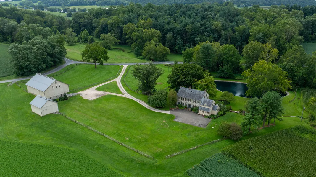 Welcome to Beaver Run Farm, a stunning 57.3+/- acre estate nestled in the scenic countryside of Strasburg, the heart of Lancaster County, PA. This exceptional property offers a blend of tillable fields, wooded areas, fenced meadow / pasture, a meandering creek, pond and peaceful setting all surrounding a very special 2 story stone home built in 1814, 51x76 Bank Barn and 30x36 Tobacco Barn. The impressive 5,660+/- sq. ft. home features 7 Bedrooms, 4.5 Baths, 3 staircases, 4 fireplaces (non-working), deep windowsills, and historic charm and character that words simply cannot describe. Extensive millwork & wood moldings, built-ins, wide plank wood floors, and 96+ ceilings are in many rooms throughout. The home overlooks a picturesque pond, with multiple outdoor living spaces that are perfect for entertaining, including a covered porch, screened in porch, and patio, all with stone floors. The long driveway gently curves offering a tranquil approach to the private setting of the home. At the front door you will be gracefully welcomed by a semi-circle stone step flanked by large classic lantern style lamppost lights adding to the historic character of the home. Upon stepping in you will feel right at home with the warm glow of the wide plank wood floors in the centrally located grand foyer with curved staircase. The Living Room boasts incredible millwork including sections of raised panel wood walls, heavy crown molding, chair rail, corner cupboard, fireplace with mantel, staircase to the 2nd and 3rd floors, and a hidden entry in the wall that can be opened to the Family Rm that creates a memorable space for entertaining. The Family Room is highlighted by beautiful trim work, crown molding, built-in bookshelves, and fireplace with mantel. The 21x15 Dining Room is truly unforgettable, with a LARGE fireplace, stone floor, raised panel wood wall, arched doorways, built-ins for dinnerware storage, and doorways leading to the screened in porch. The expansive Kitchen with triple windows at the sink overlooking the pond and landscaped grounds, additional prep area with sink, plentiful cabinetry and storage space, breakfast nook with farmland views, large laundry area with cabinetry and sink, staircase to Primary Bedroom Suite area and bedroom that could be an ideal office. The enclosed Porch/Mudroom is just off the kitchen with outside entrance for everyday use to driveway. The Primary Bedroom Suite features a fireplace, crown molding and chair rail, closet area, primary bath with tile floor, water closet, two sinks and a walk in tile shower. The additional four bedrooms and two full baths on 2nd floor each have their own charm and character. Two more bedrooms and full bath on the third floor each with cathedral ceilings and exposed wood beams, and one of the bedrooms having a built in desk, shelves, drawers, and storage space. The lower level of bank barn contains a garage that is deep enough for two cars. The First Floor of the home has Central Air Conditioning. The Property is enrolled in Act 319 (Clean & Green) and is Zoned Agricultural. The Property is located on both sides of the road see GIS view of parcel. Location offers a rural country setting while being closed to major cities and airports. Its approximately 1.5 hours from Philadelphia and Baltimore, 2.5 hours to Washington, DC, and roughly a 2 to 3 hour drive to New York City. This may be a once in a lifetime opportunity to acquire this rare property!