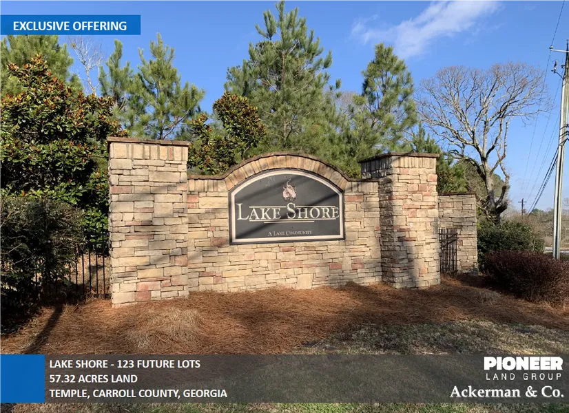 The property is comprised of 57.32 acres of land planned for 123 future lots in Lake Shore Subdivision in Temple, Georgia.