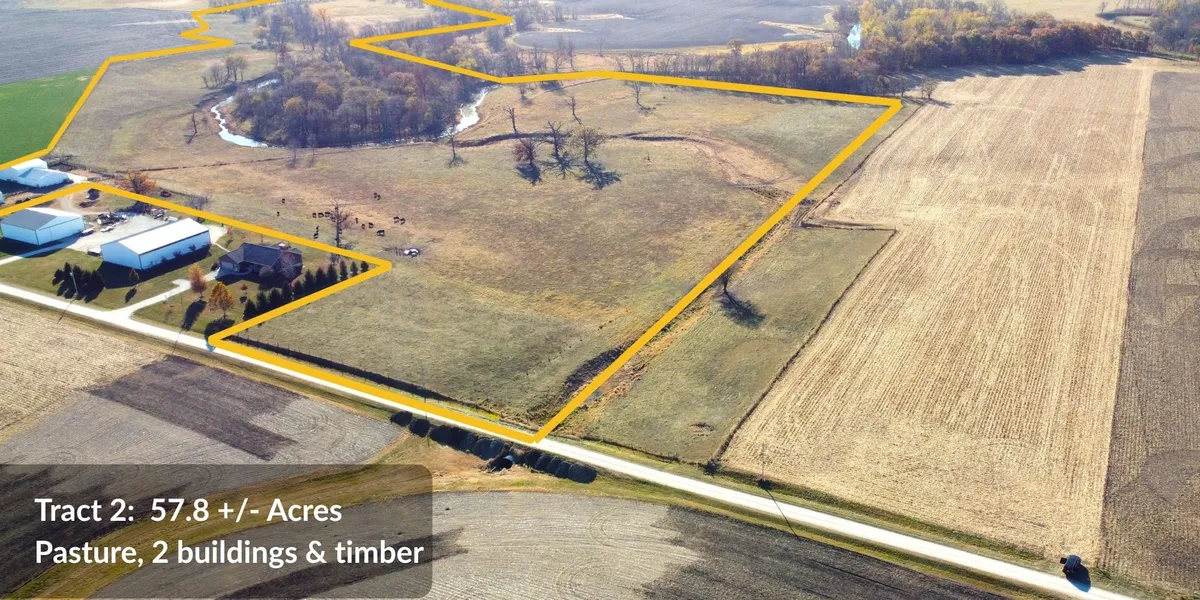 This versatile Mud Creek property in southern Iroquois County offers a mix of pasture, woodland, and recreational land. Explore this expansive pasture and wooded recreational property along Mud Creek in southern Iroquois County—a rare opportunity for outdoor enthusiasts, farmers, or investors seeking versatile land options. The property can be purchased as a whole or divided into up to four tracts, offering flexibility to fit a variety of needs. A survey will be completed prior to closing to determine the final acreage. The tracts include a mix of open pasture, wooded habitat, and creek frontage, ideal for recreation, livestock, or a peaceful retreat. Tract 2 features 57.8± acres with pasture, two farm buildings, and woodland; The property lies partially within the 100-year floodplain and the sellers are open to discussing alternate tract layouts to best meet the buyer preferences.