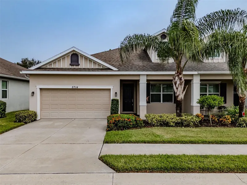 Welcome to this 2 bedroom 2 bath villa, located in Bridgewater Landing, one of the area's most desirable 55+ communities. The kitchen is a chef's delight offering lots of cabinets with crown moulding, granite countertops, stainless steel appliances, a closet pantry, and a bar top for casual dining. The dining area is large enough for your family meals. The open & airy great room features a tray ceiling, glass sliding doors that lead to the lanai and offers plenty of room to entertain. The large primary suite features picture windows and glass sliders for added natural light and backyard views. The En-Suite offers dual sinks, a walk-in shower and a large walk-in closet. The secondary bedroom is located at the front of the home. LVP flooring in the bedrooms. The laundry room offers a washer & dryer, a laundry sink and a hanging rack. The peaceful, screen enclosed lanai is the perfect area for your morning coffee and you will enjoy the privacy of no back yard neighbors. You will love your maintenance-free lifestyle with an HOA that covers lawn care! There are not any CDD fees here! Bridgewater Landing offers a lively lifestyle with a delightful clubhouse at the center of the community. There is so much to do here, On hot days, you can enjoy the pool and patio area and on the cooler days, take a walk around the pond. Located just minutes from shopping, dining, I-75 and the Lee Roy Selmon Expressway. Best of all, Publix, Starbucks, and local restaurants are right across the street from your community.