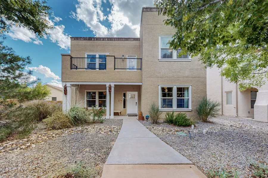 Nestled in a park like atmosphere and lovingly updated. This cozy home in Mesa Del Sol has a custom tile backsplash & hood in kitchen, pot filler above gas stove, lovely painted cabinets with all new hardware. Reverse osmosis system under sink. All light fixtures replaced throughout the home. All door hardware replaced. Custom landscape in back yard. Custom front door. No carpet. Engineered hard wood floor upstairs, in downstairs bedroom/office and on stairs. Smart home w/smart hub. Large walk in primary closet! w/d & refrigerator convey. 3 car tandem garage. 3rd garage bay was walled in w/door to create lockable storage space but you could easily remove it to re-gain the 3rd parking space. Sellers will consider paying off solar with acceptable offer.