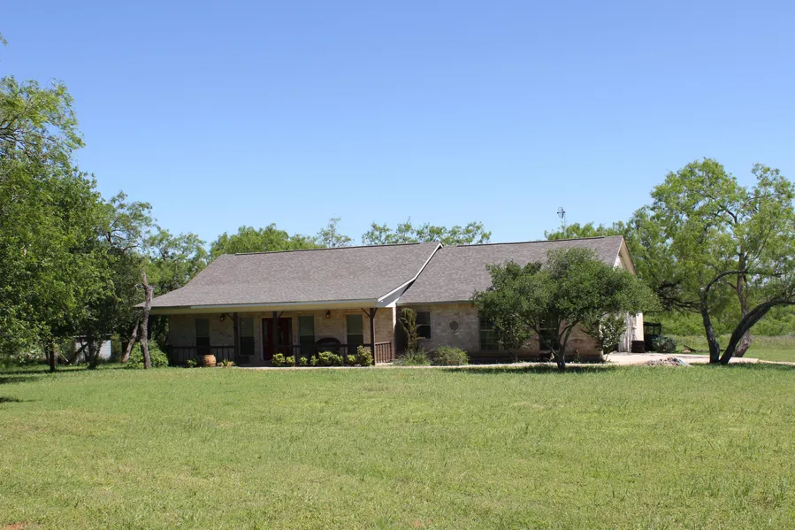 ELM CREEK RANCH- OVER 129 ACRES OF MOSTLY WOODED LAND W/ROLLING TOPOGRAPHY, HUGE LIVE OAK & OTHER NATIVE HARDWOOD TREES, TWO STOCK TANKS, WILDLIFE, SEASONAL ELM CREEK BOTTOM AND NICE HOME WITH A VIEW LOCATED JUST 20 MINUTES EAST OF SAN ANTONIO AND JUST WEST OF SEGUIN. COMFORTABLE BRICK RANCH STYLE HOME ON A HILL W/HIGH CEILINGS, WOOD & TILE FLOORS, SOLID SURFACE COUNTERTOPS, WOOD STOVE, OFFICE, BACK DECK AND SPACIOUS MASTER SUITE. THE PROPERTY HAS SEVERAL ADDITIONAL GOOD HOMESITES A LARGE POLE BARN AND A BACK YARD STORAGE BLDG.