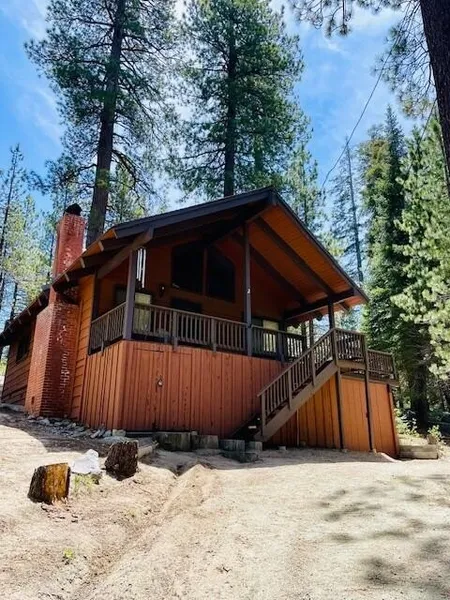 Cozy up to the warm fire and enjoy the snow to come. You will have the best winter ever in this move in ready Cabin Located in the beautiful Sierra Nevada mountains. The price also Includes the lot next door. For a total of just under 1 acre 33,439 sq foot for both lots. How's that for space and privacy ? The main level has 1 bedroom with lots of closet space and a bath right across the hallway. The upper area loft is set up with 2 beds for additional sleeping . The kitchen has a gas stove, microwave, fridge , pantry and great views from the window over the sink which over looks the wrap around deck. The kitchen opens to the living area with vaulted beamed ceilings , fireplace and a spiral staircase that leads to the cozy loft . This cabin is fully furnished . Bring you bags and move in. The front porch (My Favorite ) is covered so sitting outside is nice year round. The deck wraps around the side for more views and seating . This cabin has a great storage area below with room for several snowmobiles, firewood and much more. Enjoy the views and the cool mountain air. Across the road is a wonderful pond for your viewing. Don't wait to long to see this one. Call your favorite realtor today.
