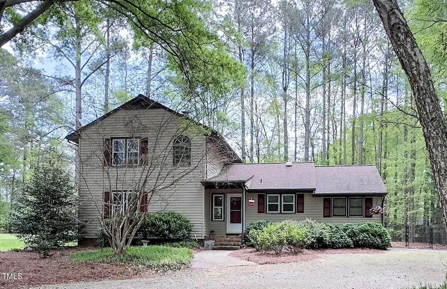 Wow! Welcome home to this rare gem in Carriage Village, nestled on 1.10 acres of near-total privacy. This beautifully maintained property offers 1,891 sq ft of living space with 3 bedrooms and 2 full baths. Freshly updated in April 2024 with brand-new carpet and paint throughout, it's move-in ready. The main level features two bedrooms, a cozy family room with a wood-burning fireplace, a bright kitchen and breakfast nook with all appliances updated within the last 18 months, and a versatile den with convenient side-entry from the driveway. Upstairs, you'll find the spacious primary suite with a private ensuite bath. Step out from the family room onto a large back deck that overlooks the private, landscaped backyard nearly 0.4 acres of which is fully fenced with black chain link and wood privacy fences. An outbuilding offers the perfect space for a workshop or additional storage. Don't miss this unique opportunity for peaceful living with modern updates!