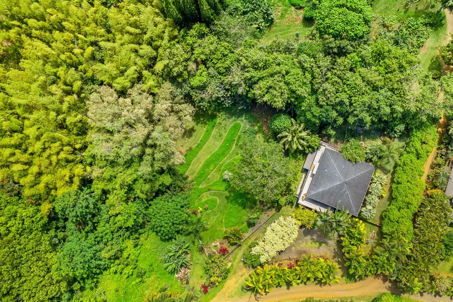 Sliders open out to an expansive, brand-new, wrap-around Ipe deck overlooking views of Sleeping Giant and terraced gardens creating seamless indoor-outdoor living, a perfect spot to relax with a morning coffee or sunset Mai Tai! Enjoy the sounds of the birds from your own private botanical garden, bamboo forest and peaceful stream. Stroll the terraced gardens with multiple intimate seating areas, outdoor sculptures/art, and numerous flowers and fruit trees (list attached).