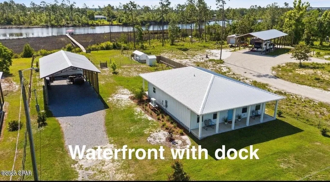Waterfront home with dock on the Intercoastal Waterway! This is a MUST SEE home! NO flood insurance required for this home! This 2 bedroom and 2 bath home is situated on 1.25 acres and has everything you could want for a true Florida lifestyle. The kitchen has stainless appliances and a peninsula with bar stools underneath. Large primary and 2nd bedrooms. Set up your home office where you can watch the boats and barges go by while you are working. This is a turn key move in home built in 2023. This home has 1,440 sf of heated and cooled living space. Including the front and back porches there is 1,944 sf of indoor/outdoor living space. The entire home is in flood zone x and the wetlands are flood zone ae. Flood insurance is not necessary on this home. Included is a high velocity central AC unit which helps to dehumidify your home from ACIQ. Pre-wired for a generator in case of power outages. Also included are impact resistant windows. You are only 5 miles to the beach from here and yet you have a lot of property and tons of outdoor spaces. There is a 24'x48' Pole barn with separate power. An outdoor sink, large counter, enclosed shower with on demand hot water are all part of this space. Both city and well water are available here. The pole barn has both 30 and 50 amp hookups, a dedicated water connection, and a pump station that ties to the septic system. The 12'x24' storage shed has tons of storage, lighting, and ac. This property also has a 45'x45' fenced garden with raised beds. Also a custom built chicken coop with covered runs, fully powered with lighting, temperature control, venting and a fan is on site. This home is the perfect place to help provide self sufficiency with fishing, eggs, and growing your own fruits and vegetables. Not to mention the amazing mammals that often drop by your dock. Dolphins, manatee, and otters have been known to visit. There is a USACE approved 4'x200' boardwalk leading to the 10'x11' dock on the Intercoastal. Paperwork has also already been submitted to the USACE for seagrass removal and dredging to accommodate a future boat slip and lift on the north side of the boardwalk. This entire property is fully fenced with a 6' privacy fence. There is a 14' automatic gate. There is a 4' removable section to expand to an 18' gate if needed. Call your favorite realtor to see the amazing property now. Buyer to verify all dimensions and information if important.
