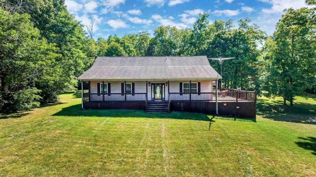Just what you have been waiting for, this Rustic Modern home has it all. If privacy is what you crave this is the one, You will simply fall in love with this custom built home that sets on 8 beautiful acres of wooded land. This home was custom built with top quality products. The home was built new in 2004 with 2X6 side walls and vaulted ceilings throughout. The kitchen cabinets are solid cherry along with solid cherry wood floors. This home has 1638 sq ft on the main level that includes 2 bedrooms, a living room, kitchen, a large 9X11 walk-in master closet & a large master bath with a jetted hot tub. The downstairs is primed for your personal finishes. Bedroom 3 is located in the lower level that already includes a egress escape window and is ready to be finished. There is plenty of room to add a 4th bedroom or a game room and plumbed for a 3rd bath. The main garage is attached to the house is over sized and has plenty of room for 2 cars plus a lot of storage or mowers. You will also fine a 30X40 pole barn that sets behind the house. The pole barn has 12 ft. ceilings and has its own electric box. You will find a creek that runs through the middle of the land. If you love outdoors activities this is the place for you. These types of home simply do not come onto the market often. This home is priced to sell quickly. Call or Text Tim @ 765-914-0994 for a private tour
